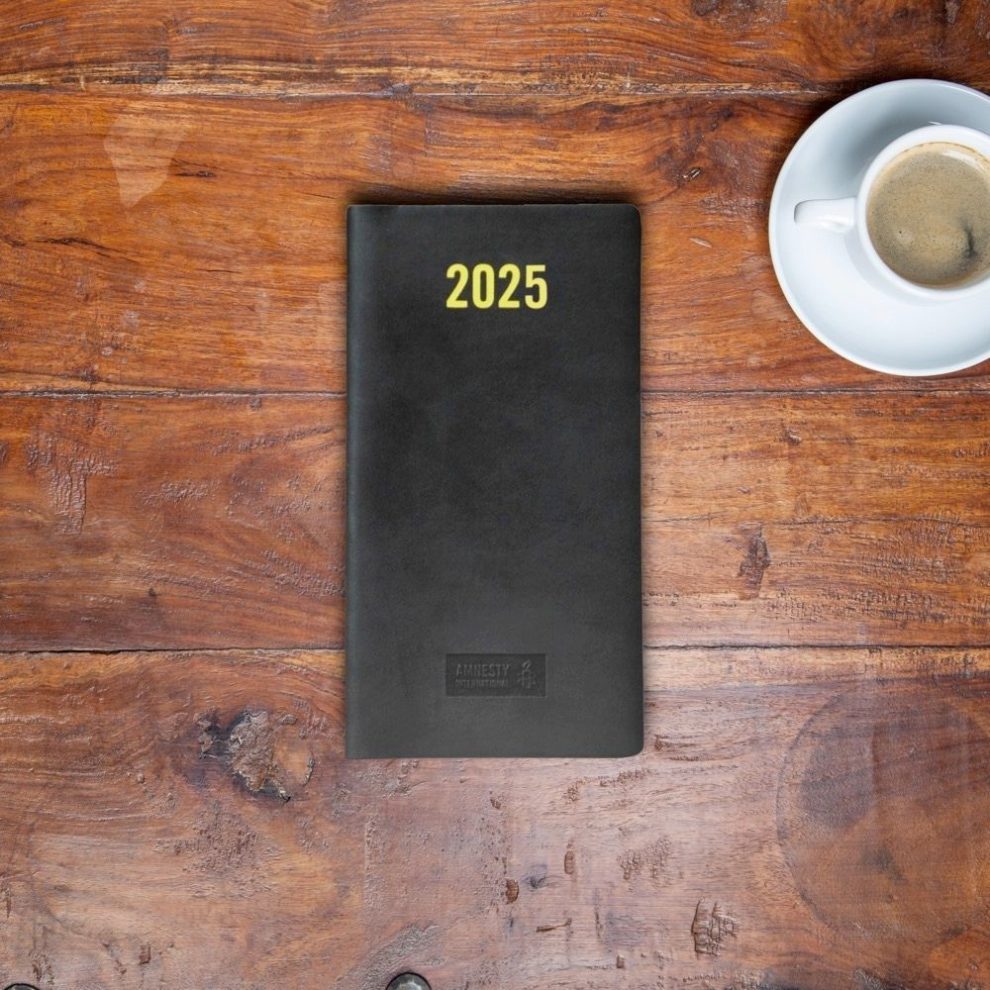 Toujours aussi pratique, l’agenda Amnesty International se décline cette année en noir et jaune, spécialement pour les 60 ans du mouvement et le cinquantenaire de la section française ! Tout en symbolisant nos valeurs : démocratie, humanité, liberté d’expression, justice, espoir, tolérance, dignité…