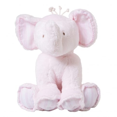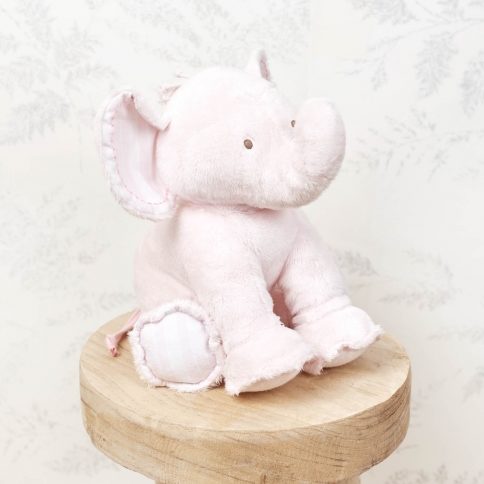 Peluche Ferdinand l’éléphant de 25 cm en fourrure synthétique rose.