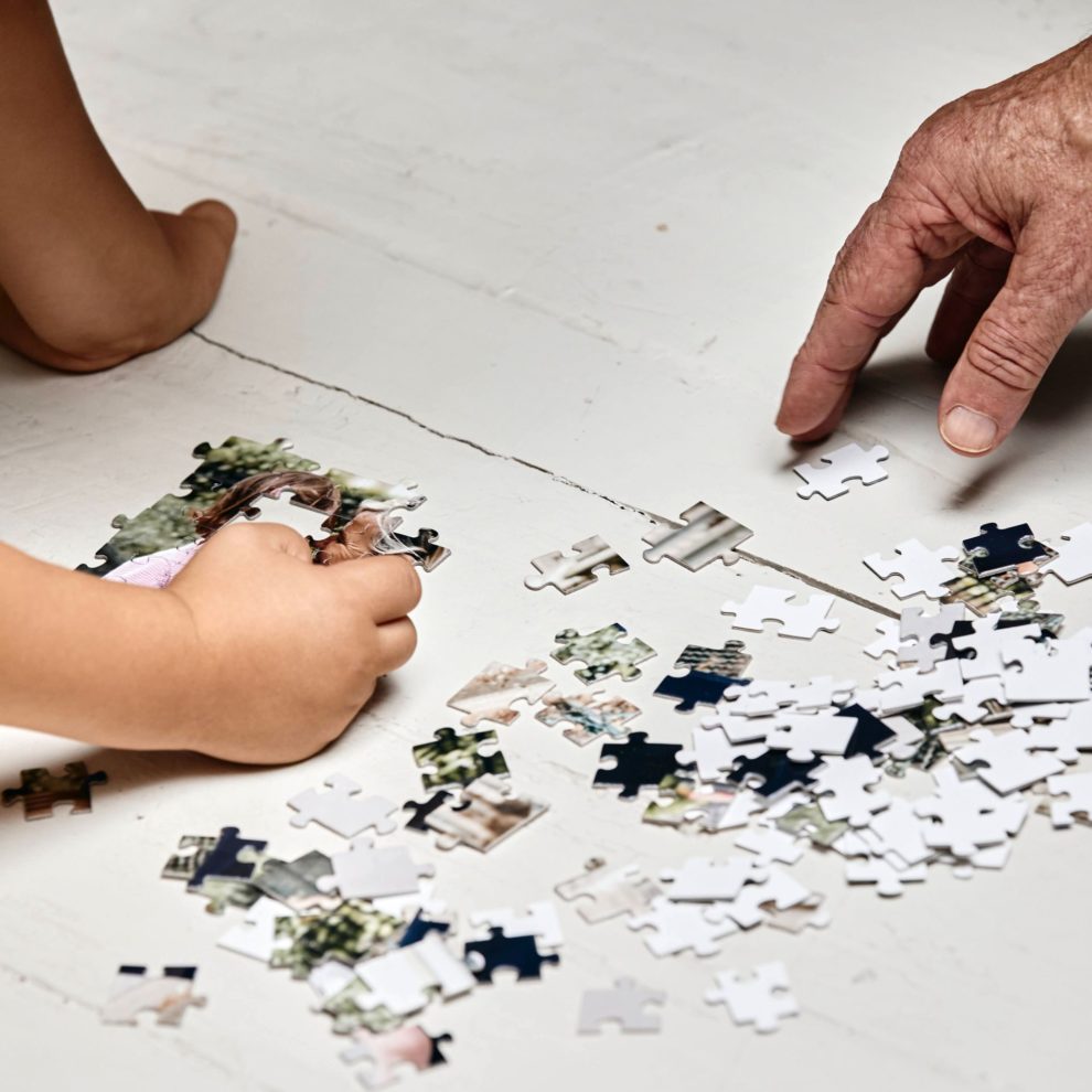 Entre le petit Lucas qui mélange sans cesse toutes les pièces, Papy qui se trompe de sens et Maman qui n’a toujours pas compris la photo qui compose le puzzle…